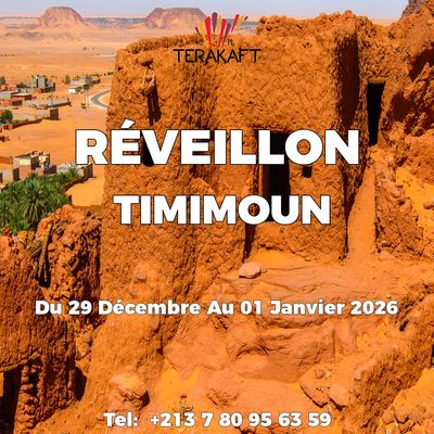 Vivez un Réveillon inoubliable à Timimoun, oasis légendaire du désert algérien. Entre dunes dorées, villages ocres et palmeraies verdoyantes, découvrez la beauté authentique du Sahara algérien.